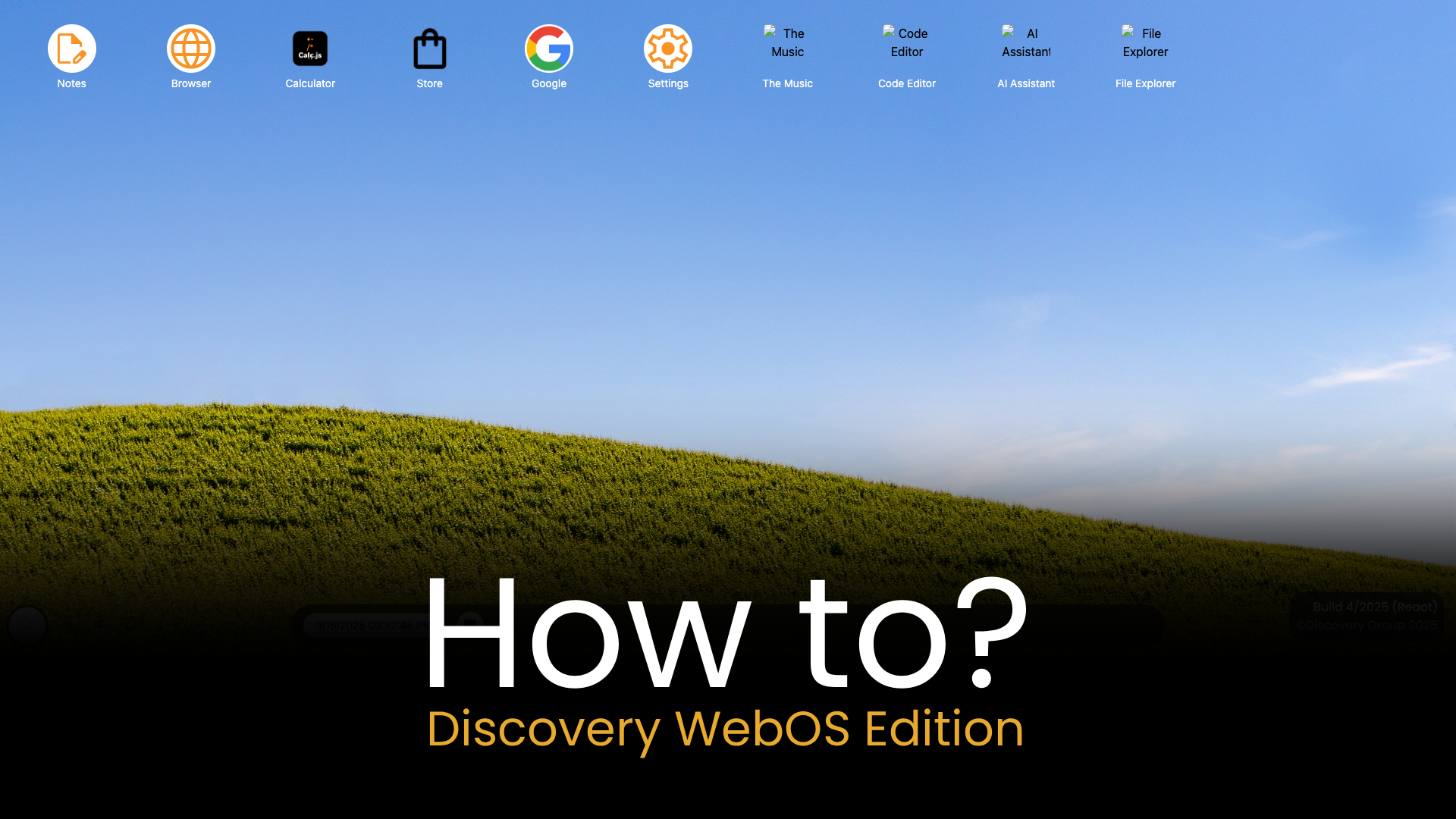 notify "Title" "Message" type=success|warning|error— Shows a toast and stores it in Notifications.prompt "Title" "Message" type=confirm|alert -> $ok— Shows a DiscoveryPrompt; capturestrue/falseinto$okifconfirm.open "App Title" route=#hash— Opens a system or custom app; appendsrouteto its URL.theme "light|dark|win8|cyberpunk"— Immediately applies and persists the theme.sleep 500— Waits (ms).set key "value"/get key -> $var— Persist to/read from localStorage.send "App Title" type=EVENT payload={...}— Posts a message to an app iframe by title (or broadcast to all if omitted). Apps can listen viawindow.addEventListener('message', ...).if <expr> then <command>— Runs one command if the expression is truthy. Example:if $ok then notify "Done" "User confirmed" type=success.